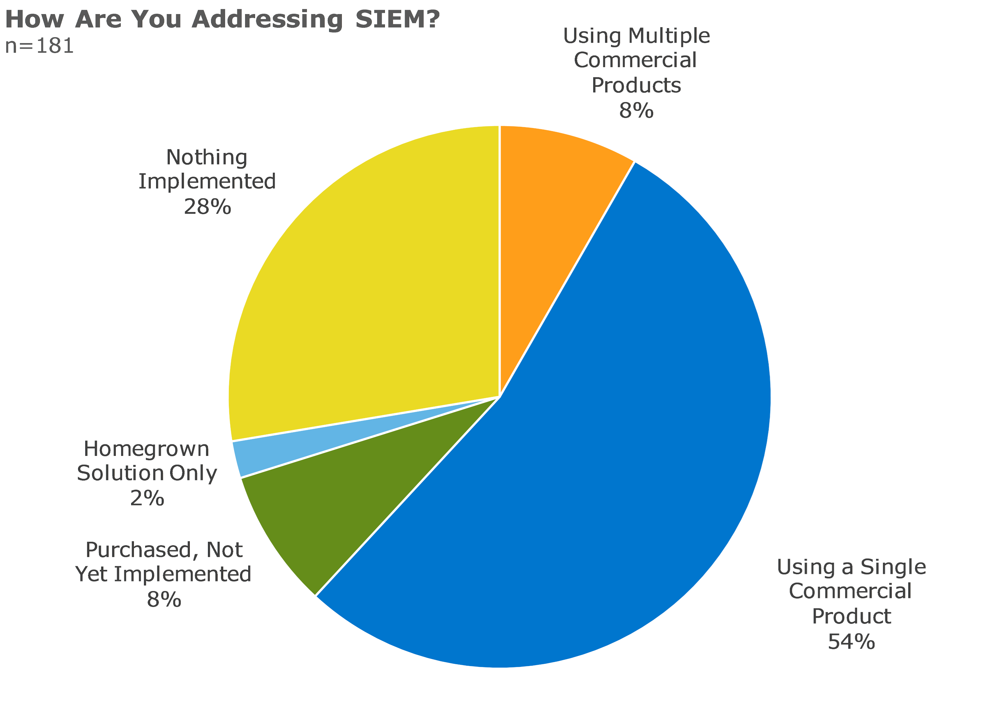 As a result, few organizations are trying to tackle SIEM through homegrown methods, and it is not uncommon for organizations to outsource SIEM services. In some cases, organizations have their own SIEM solution and outsource only the 24/7 monitoring. More frequently, however, organizations outsource both the software and the ongoing monitoring to a managed services firm. Other organizations take a more measured approach by not initially including all logs, limiting their event monitoring and alerting to just network activity so that they can detect issues, such as slow servers, that could indicate a potential attack or failing disk. Only one interviewed organization is using their SIEM solution to monitor anomalous behavior, although multiple organizations say their SIEM solution opened the door for this type of analysis in the future.