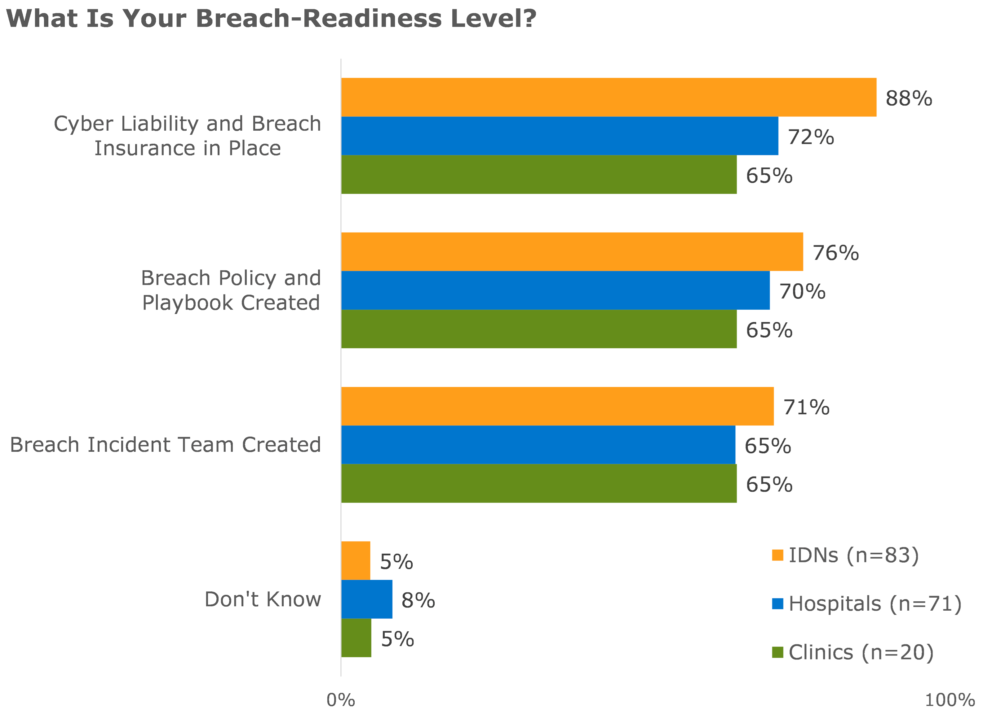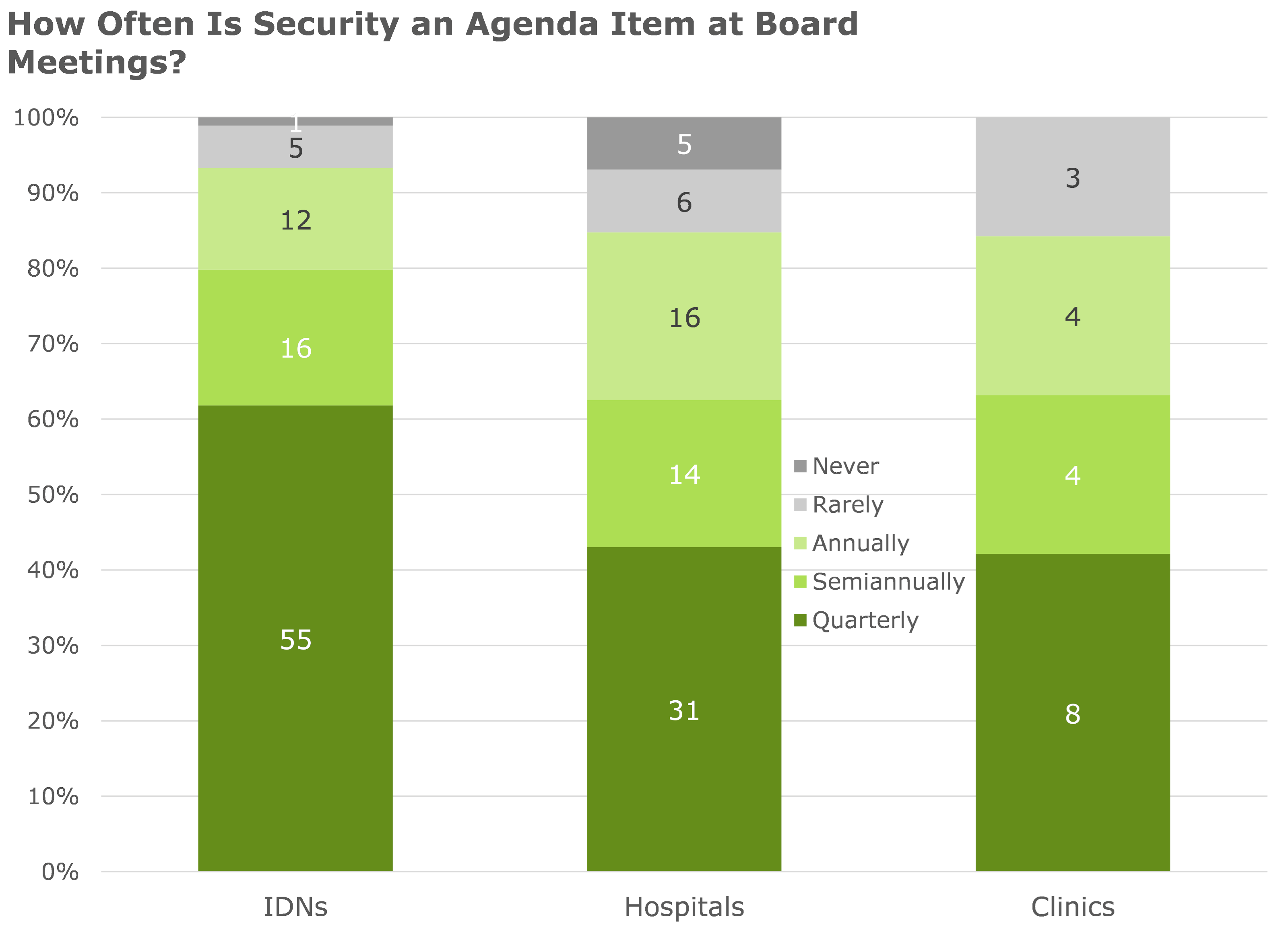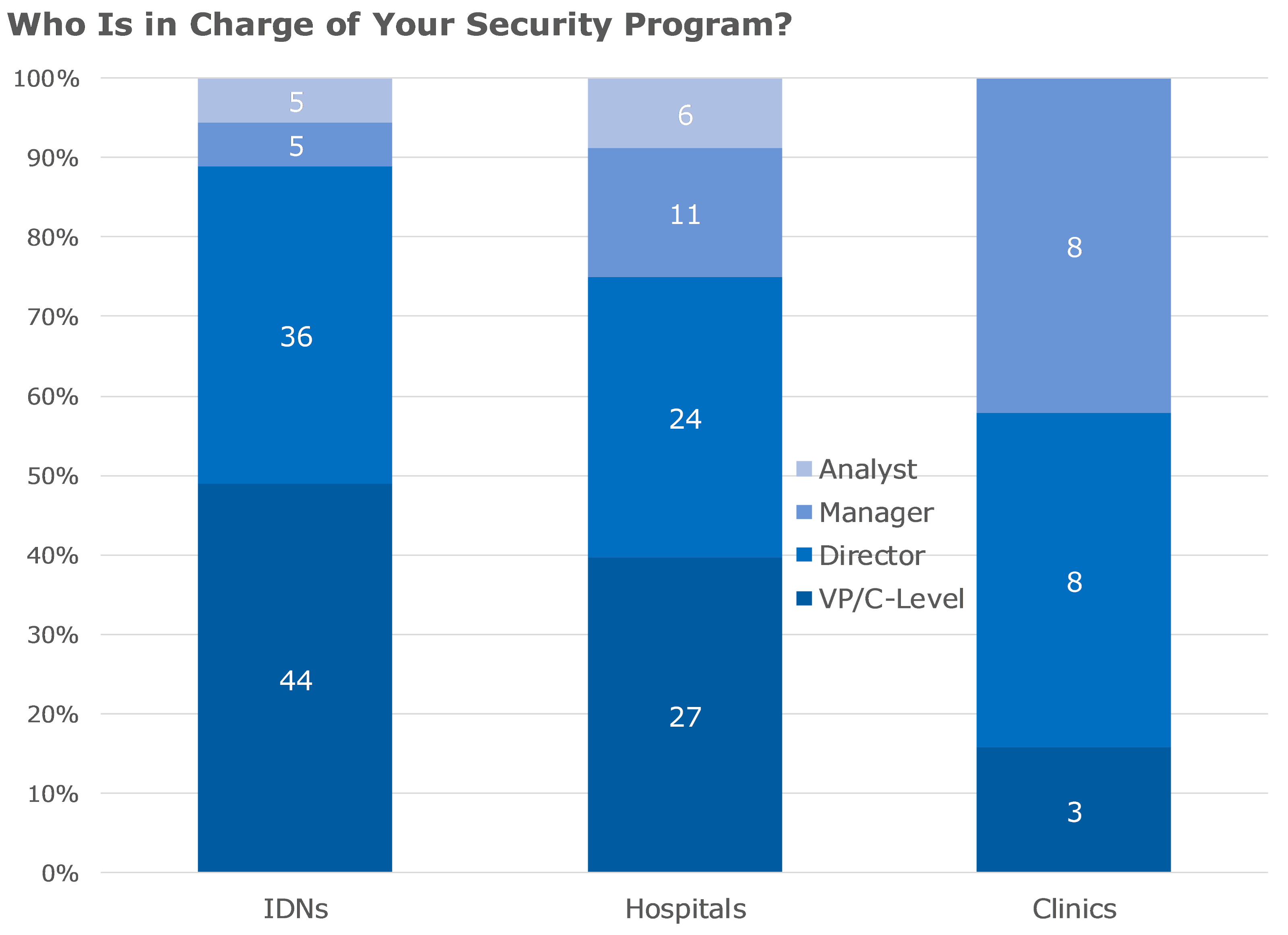 • Only 16% of organizations feel they have a fully functional security program; nearly all of these are IDNs or larger hospitals.