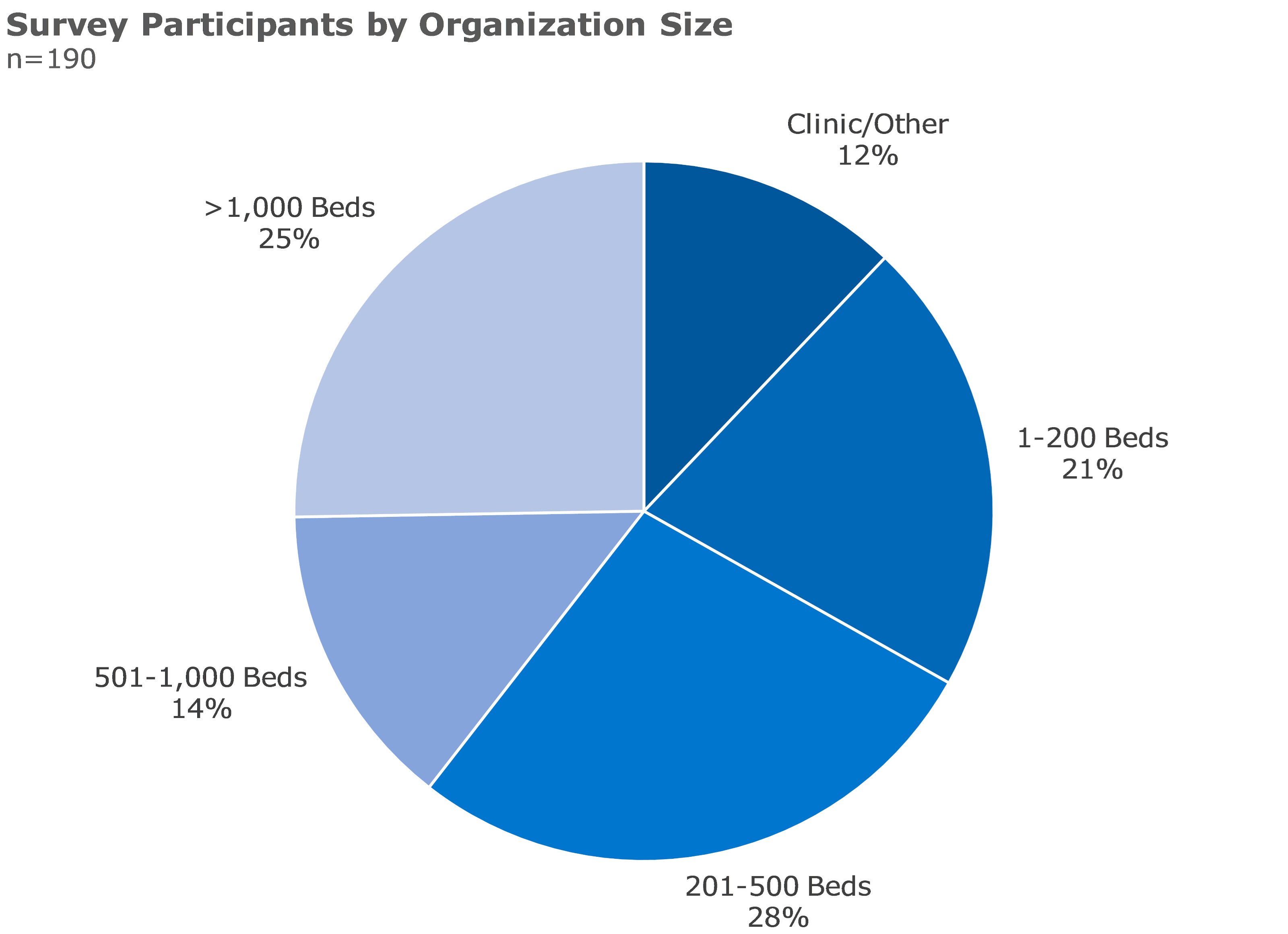 Working with their Security Advisory Board, KLAS designed a detailed questionnaire to measure the current state of healthcare security, including vendor capabilities. Over the course of four months in 2016, KLAS conducted nearly 200 interviews with chief information security officers (CISOs), chief information officers (CIOs), chief technology officers (CTOs), and other security professionals. To cover the largest number of impacted providers and patients, the research targeted mainly integrated delivery networks (IDNs) and hospitals, with some additional input gathered from large physician practices (75+ physicians). Below is a breakdown of the organizations and respondents that participated in this study.